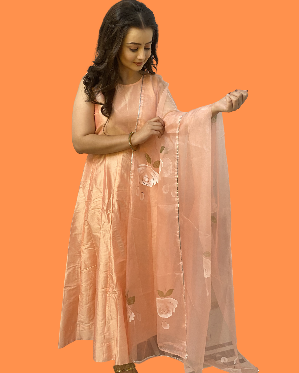 GAZAL PASTEL PEACH HAND PAINTED SUIT-SET