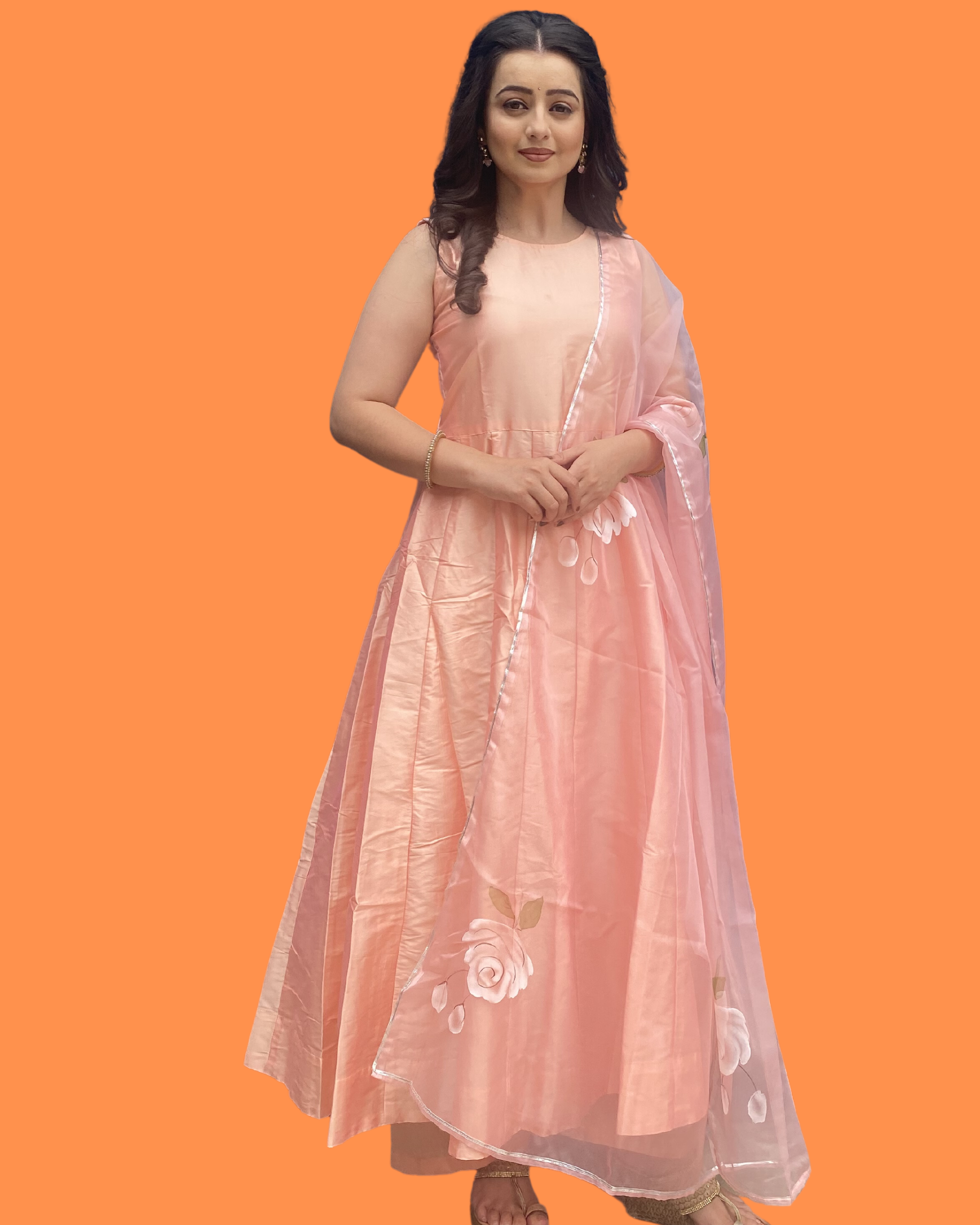 GAZAL PASTEL PEACH HAND PAINTED SUIT-SET