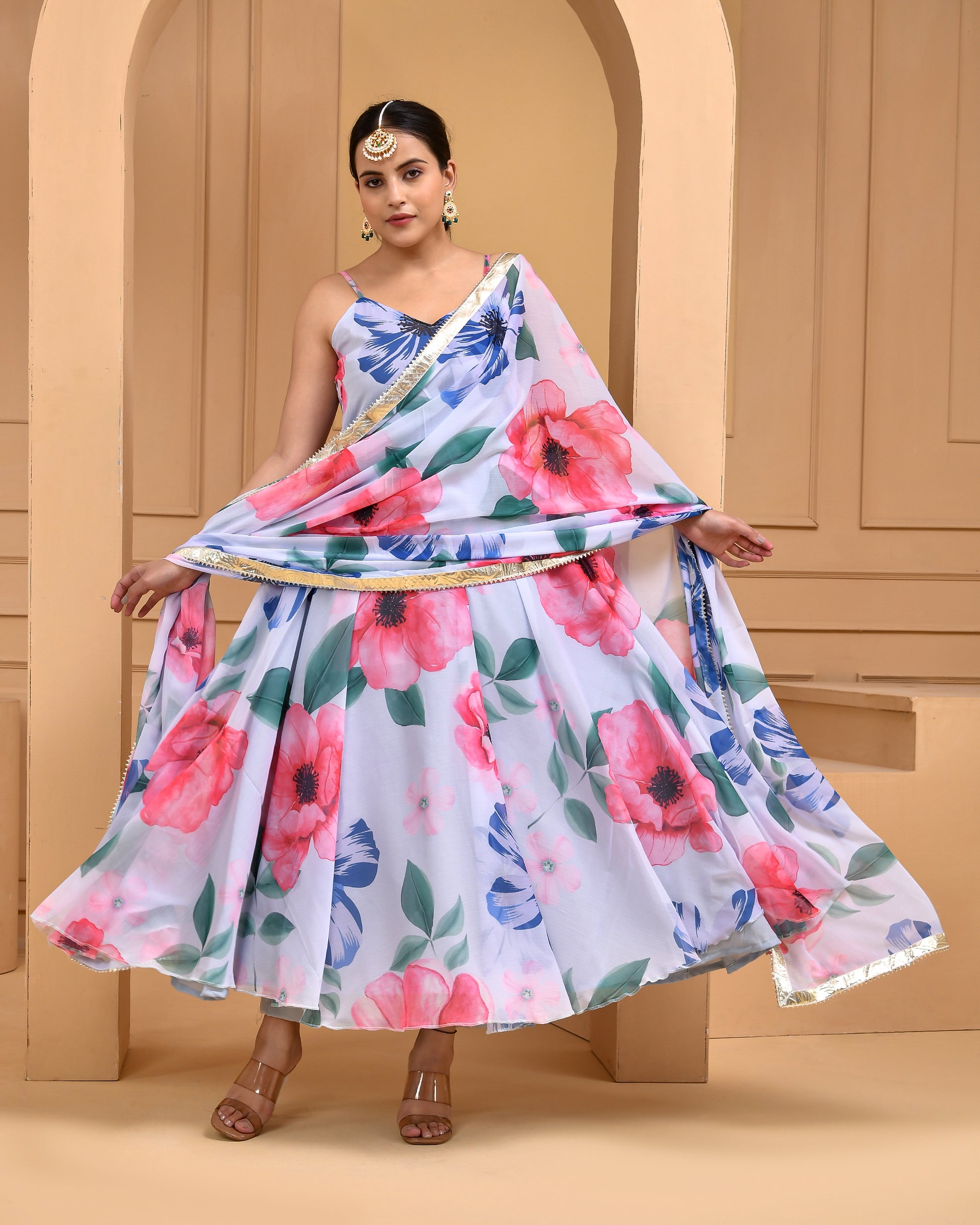 Kurta description : Flared ,georgette, printed kurta with cotton lining.